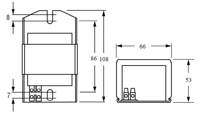 Alimentatore ferromagnetico da incorporare, classe I. • Resinatura in poliestere sotto vuoto. • Protezione termica. • Temperatura limite di avvolgimento Tw 130°C. • Morsetti ad innesto rapido per cavi di diametro 0,5 - 1,5 mm2 . • Morsetti a vite per cavi di diametro 0,5 - 2,5 mm2.