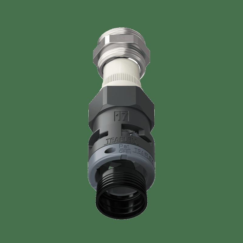 I raccordi SR con filetto metallico e la combinazione dei gommini pressacavo offrono un’eccezionale tenuta alla trazione, alla torsione e garantiscono una protezione da infiltrazioni di polveri e liquidi (IP68) sulle guaine corrugate e sul cavo stesso. Il filetto metallico assicura una più alta resistenza alla trazione e la possibilità di essere saldamente ancorato con un comune frena filetti. Raccomandato nelle applicazioni tecniche ad elevate prestazioni nell’industria pesante e nel settore ferroviario.