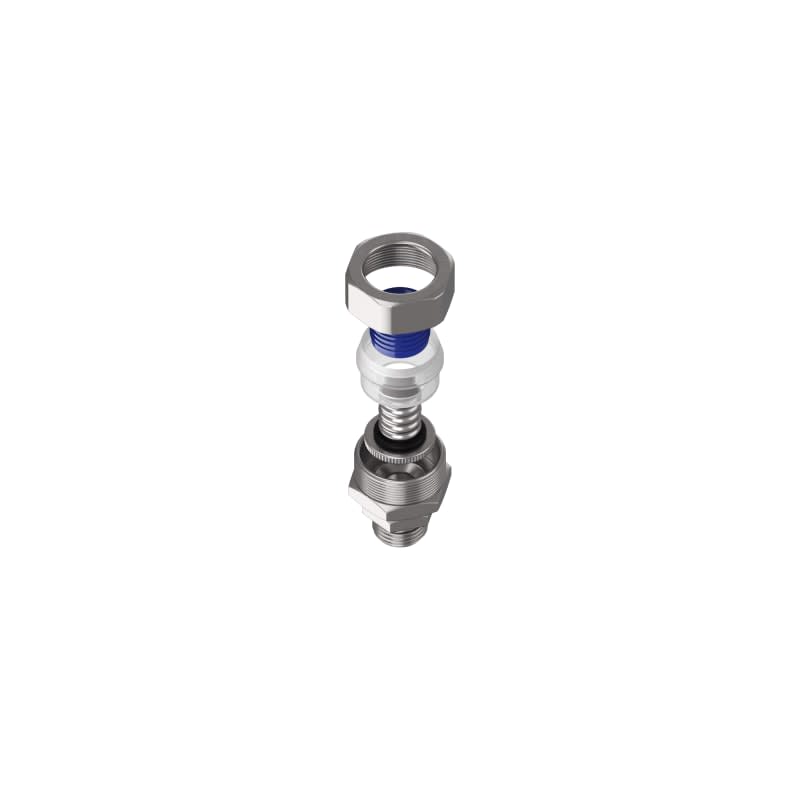 Costruito con la filosofia dei raccordi CM per le guaine metalilche, questo raccordo in ottone nichelato con maschio girevole permette di effettuare i collegamenti su tutti i tipi di guaine in poliammide rivestite con treccia in acciaio zincato o in acciaio inox AISI 304. Il collegamento raccordo-guaina viene effettuato mediante una virola ed un anello in nylon. La particolare costruzione della virola consente l’inserimento a pressione della guaina, permettendo di ottenere un abbinamento dotato di un’ottima resistenza alla trazione ed alla vibrazione. L’anello di nylon, invece, bloccando esternamente la guaina flessibile, completa l’accoppiamento raccordo-guaina, garantendo un grado di protezione IP67.