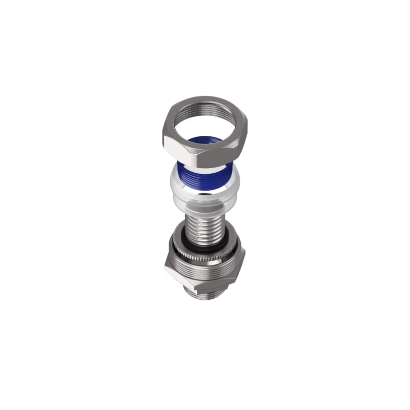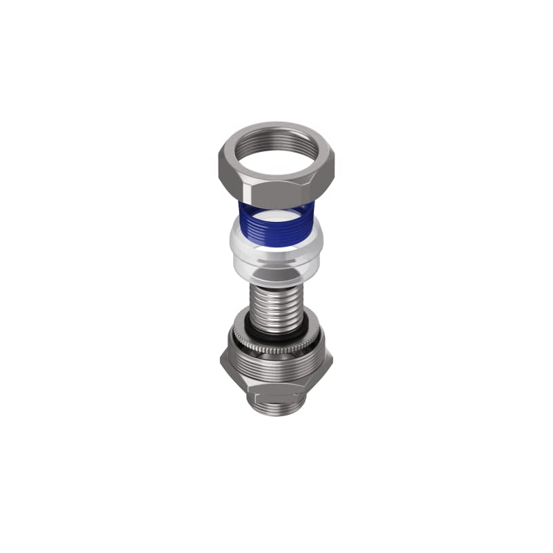 Costruito con la filosofia dei raccordi CM per le guaine metalilche, questo raccordo in ottone nichelato con maschio girevole permette di effettuare i collegamenti su tutti i tipi di guaine in poliammide rivestite con treccia in acciaio zincato o in acciaio inox AISI 304. Il collegamento raccordo-guaina viene effettuato mediante una virola ed un anello in nylon. La particolare costruzione della virola consente l’inserimento a pressione della guaina, permettendo di ottenere un abbinamento dotato di un’ottima resistenza alla trazione ed alla vibrazione. L’anello di nylon, invece, bloccando esternamente la guaina flessibile, completa l’accoppiamento raccordo-guaina, garantendo un grado di protezione IP67.