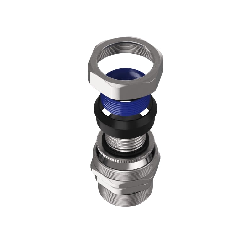Costruito con la filosofia dei raccordi CM per le guaine metalilche, questo raccordo in ottone nichelato con maschio girevole permette di effettuare i collegamenti su tutti i tipi di guaine in poliammide rivestite con treccia in acciaio zincato o in acciaio inox AISI 304. Il collegamento raccordo-guaina viene effettuato mediante una virola ed un anello in nylon. La particolare costruzione della virola consente l’inserimento a pressione della guaina, permettendo di ottenere un abbinamento dotato di un’ottima resistenza alla trazione ed alla vibrazione. L’anello di nylon, invece, bloccando esternamente la guaina flessibile, completa l’accoppiamento raccordo-guaina, garantendo un grado di protezione IP67.