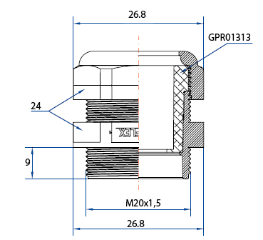 Dimensione nominale della filettatura metrica/PG - 13