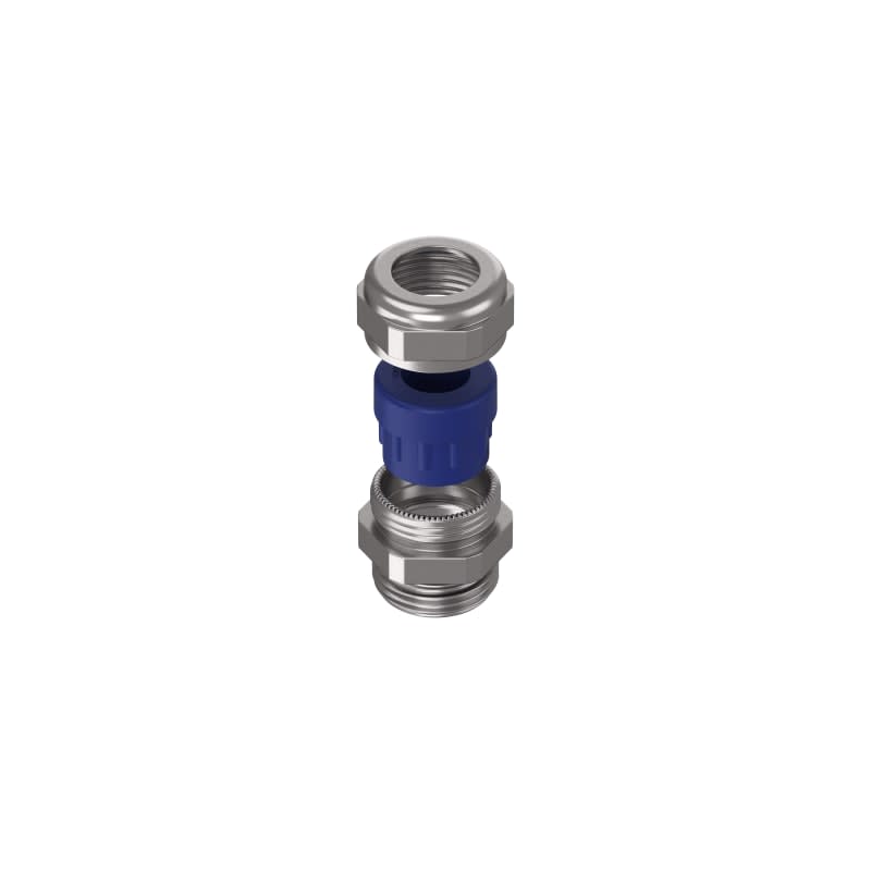 Pressacavo in acciaio inox AISI 316L con gommino di serraggio in TPE e anello O-ring sulla filettatura IP68.