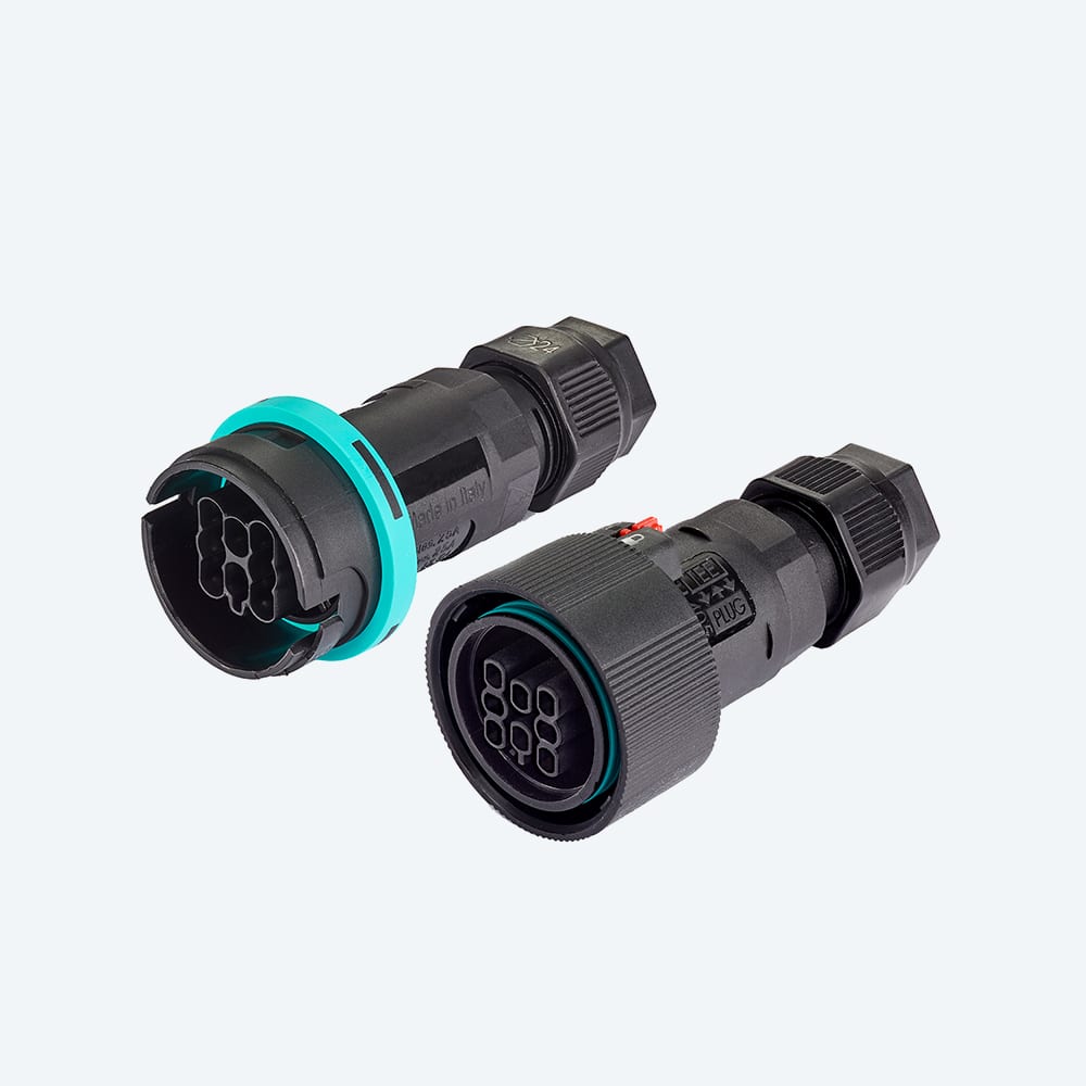 Connettori rapidi maschio e femmina cavo-cavo, da pannello e speciali ad alte prestazioni (IP6x). Sistemi di connessione modulare con l'obiettivo di garantire flessibilit?, velocit? e costi contenuti nella configurazione e manutenzione di impianti e macchine sempre pi? complesse.