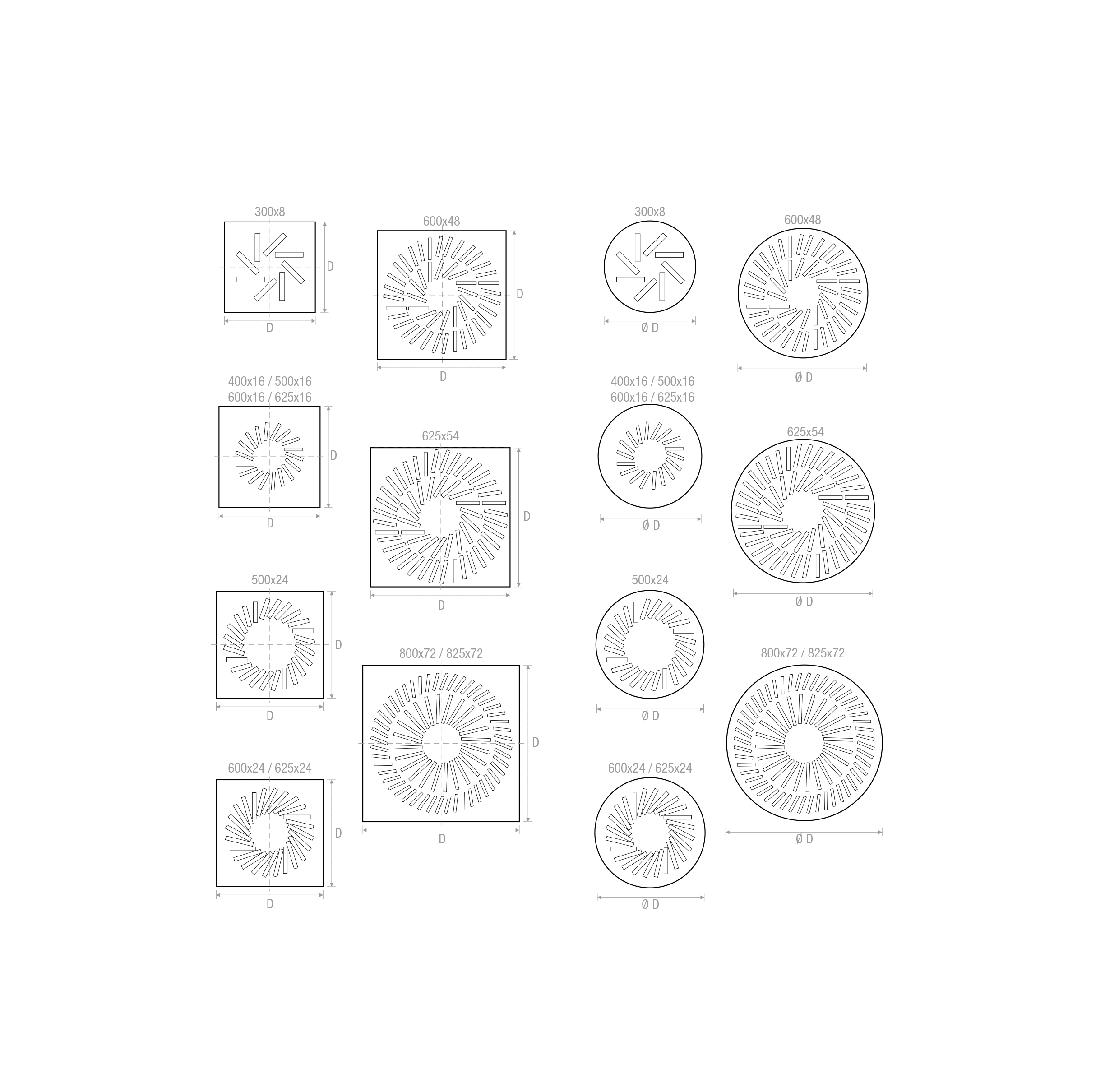DIFFUSORE A GETTO ELICOIDALE REGOLABILE A SOFFITTO mod/fori=500x24 - mis= 495x495
