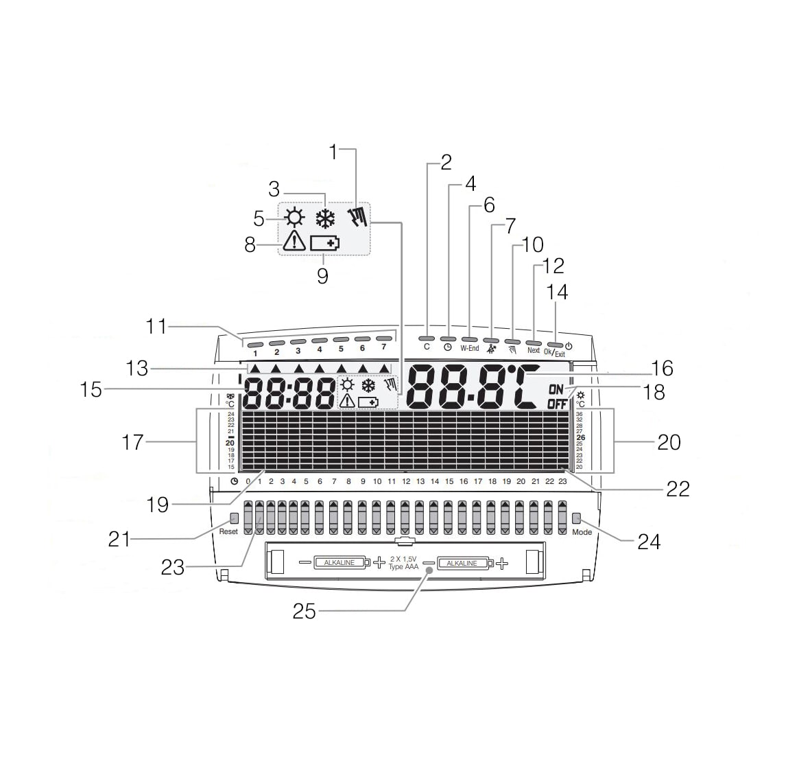 CRONOTERMOSTATO MOD. CR017BG DIGIT. A PARETE BIANCO VERS. UP & DOWN GIORNALIERO