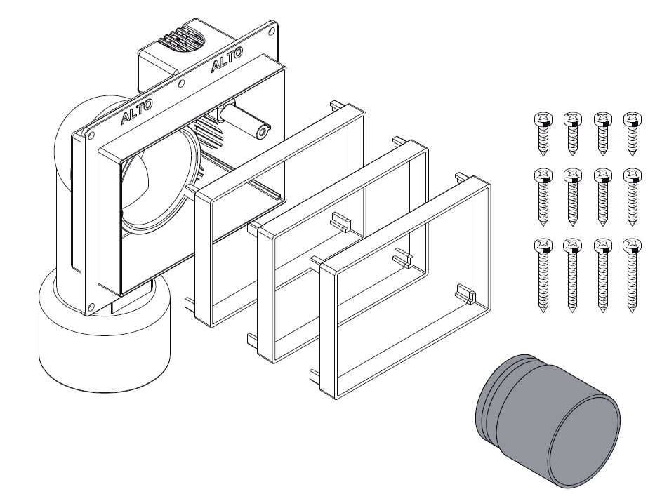 Kit di prolunga per contropresa rettangolare.Il Kit di prolungamento della contropresa rappresenta una vera e propria innovazione nel settore.Grazie a questa soluzione é possibile prolungare la scatola murata a multipli di un centimetro senza limiti di misura; la scatola portata a fi lo parete garantisce una semplice installazione e una perfetta tenuta della presa aspirante.