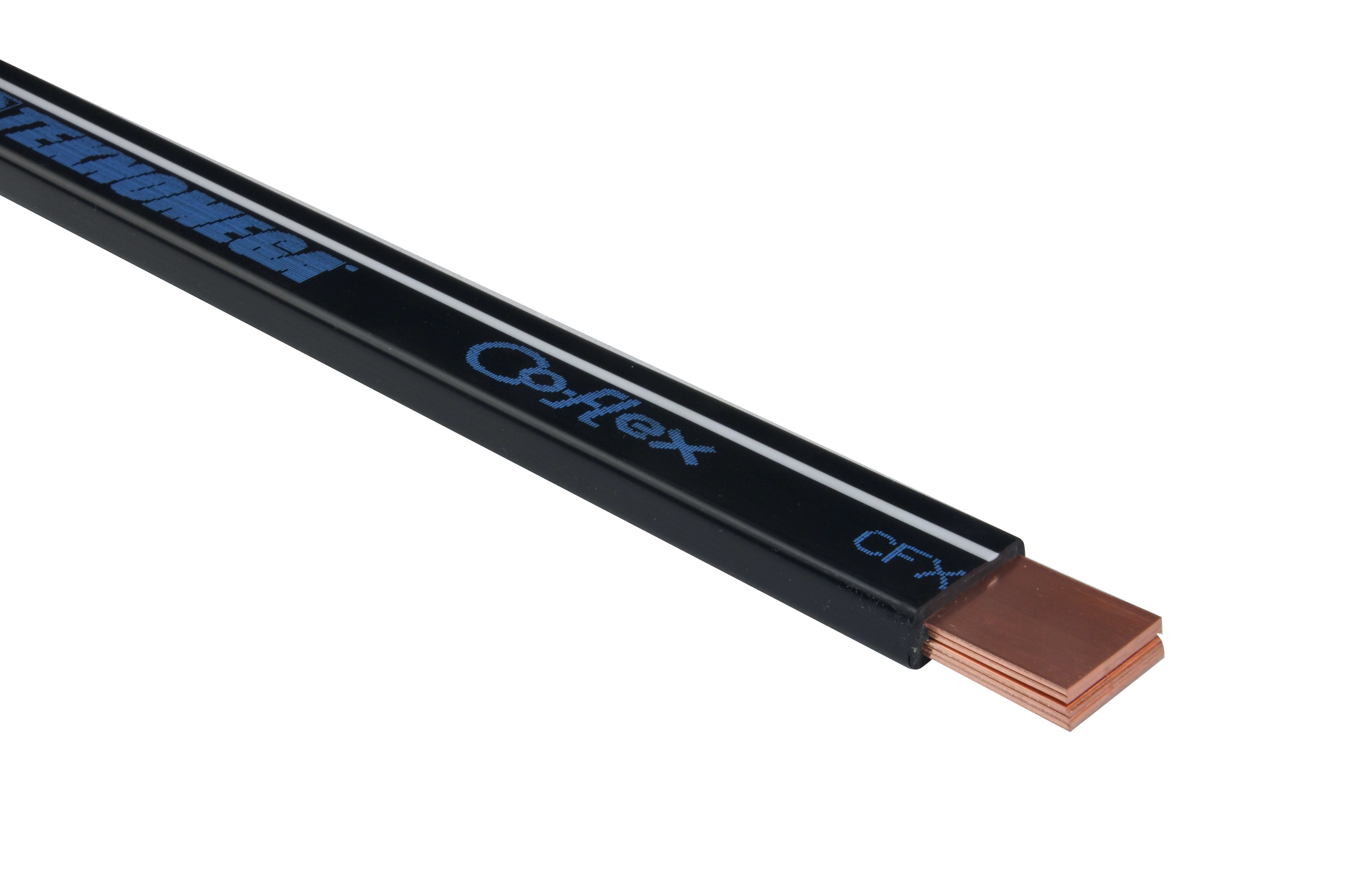 COFLEX - Barre flessibili in rame isolate . Prodotta in un nuovo e avanzato impianto produttivo di Teknomega, COFLEX, l’unica barra flessibile “bi-color” (brevettato) si distingue per l’elevata flessibilità e per l’eccellente aspetto. COFLEX è il conduttore ideale per la connessione tra: - alimentazione principale e apparecchiature elettriche (interruttori, sezionatori, ecc.) - blindosbarra e quadro elettrico - trasformatore e blindosbarra. COFLEX è realizzata con lamine di rame elettrolitico rivestite da un isolamento altamente resistente e autoestinguente che assicura un ottimo isolamento elettrico anche in presenza di umidità, alte temperature e ambienti aggressivi. COFLEX consente la realizzazione di connessioni elettriche molto vantaggiose rispetto alle connessioni con cavo o con barra rigida. Le connessioni COFLEX, realizzate preforando direttamente le lamine, sono sicure ed affidabili e rendono semplice e veloce l’installazione. VANTAGGI RISPETTO ALLA BARRA RIGIDA: • Aumento della portata elettrica a parità di sezione con miglioramento della sicurezza • Risparmio di materiale e riduzione degli ingombri • Facile e veloce sagomatura del conduttore anche per grandi dimensioni • Risparmio del costo e del tempo di installazione dei supporti barra e/o isolatori in quanto il conduttore è isolato. VANTAGGI RISPETTO AL CAVO: • Aumento della portata elettrica a parità di sezione • Riduzione dello spazio d’installazione • Riduzione della lunghezza e del numero di conduttori • Risparmio del costo e del tempo di installazione dei capicorda • Eliminazione delle resistenze di contatto dei capicorda. CARATTERISTICHE TECNICHE: • Conduttore: Rame elettrolitico: Cu-ETP - EN 13599; Spessore lamine: 0,5 - 0,8 - 1 mm • Isolamento: PVC autoestinguente UL 94-V0 in colorenero con righe in colore naturale; Spessore: 2 mm ± 0,2; Allungamento max: 365%; Durezza: 80 Shore A; Resistenza alla rottura: 19 MPa; Rigidità dielettrica: 20 kV/mm • Prodotto finito: Tensione nominale: 1000 V AC / 1500V DC; Temperature di lavoro: -40°C÷ +105°C