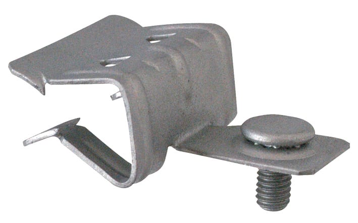 Clip di fissaggio orizzontale con vite in Acciaio armonico Ω CLIP, serie EASY. La gamma di fissaggi rapidi Ω CLIP, rappresenta la soluzione ideale per connettere strutture metalliche, portanti e non, con la maggior parte degli elementi costituenti gli impianti sia elettrici che meccanici. RAPIDITÀ: il montaggio, semplice e veloce, rappresenta un notevole risparmio in termini di tempo offrendo all’installatore la possibilità di risparmiare fatica ma soprattutto denaro. GAMMA: una vasta gamma di referenze e di combinazioni che ben si adattano a tutte le problematiche tecniche. SICUREZZA E COMODITÀ: non è necessario realizzare alcun foro o, tantomeno, saldature sulla struttura metallica; non sono richiesti specifici utensili né specifiche abilità per la messa in opera di queste soluzioni. MODO D’IMPIEGO: l’installazione di tutti gli elementi Ω CLIP, è facile e rapida, un semplice colpo di martello o un “giro” di cacciavite sono le uniche operazioni richieste per creare un fissaggio solido ed affidabile. CARICHI: tutti gli elementi della gamma di fissaggio Ω CLIP, vengono testati e controllati a campione prima dell’imballo. I carichi indicati nelle tabelle, considerano un coefficiente di sicurezza 3 : 1. MATERIALE IMPIEGATO: acciaio armonico secondo norme DIN 17222 (UNI-EN 10132-4); acciaio che, dopo il trattamento al quale viene sottoposto, acquisisce una durezza HRc 43 ÷ 50.