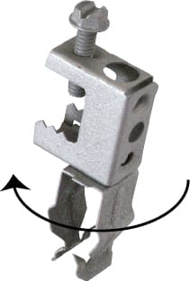 Clip di fissaggio con morsetto con fissatubo verticale in Acciaio armonico Ω CLIP, serie CLAMP. La gamma di fissaggi rapidi Ω CLIP, rappresenta la soluzione ideale per connettere strutture metalliche, portanti e non, con la maggior parte degli elementi costituenti gli impianti sia elettrici che meccanici. RAPIDITÀ: il montaggio, semplice e veloce, rappresenta un notevole risparmio in termini di tempo offrendo all’installatore la possibilità di risparmiare fatica ma soprattutto denaro. GAMMA: una vasta gamma di referenze e di combinazioni che ben si adattano a tutte le problematiche tecniche. SICUREZZA E COMODITÀ: non è necessario realizzare alcun foro o, tantomeno, saldature sulla struttura metallica; non sono richiesti specifici utensili né specifiche abilità per la messa in opera di queste soluzioni. MODO D’IMPIEGO: l’installazione di tutti gli elementi Ω CLIP, è facile e rapida, un semplice colpo di martello o un “giro” di cacciavite sono le uniche operazioni richieste per creare un fissaggio solido ed affidabile. CARICHI: tutti gli elementi della gamma di fissaggio Ω CLIP, vengono testati e controllati a campione prima dell’imballo. I carichi indicati nelle tabelle, considerano un coefficiente di sicurezza 3 : 1. MATERIALE IMPIEGATO: acciaio armonicosecondo norme DIN 17222 (UNI-EN 10132-4); acciaio che, dopo il trattamento al quale viene sottoposto, acquisisce una durezza HRc 43 ÷ 50.