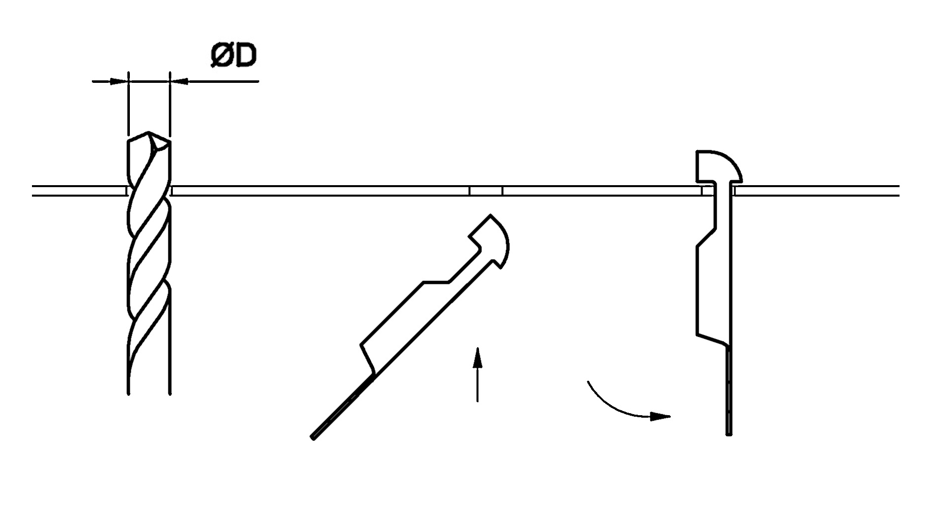 Clip di fissaggio verticale con foro per lamiera grecata in Acciaio armonico Ω CLIP, serie HOOK. La gamma di fissaggi rapidi Ω CLIP, rappresenta la soluzione ideale per connettere strutture metalliche, portanti e non, con la maggior parte degli elementi costituenti gli impianti sia elettrici che meccanici. RAPIDITÀ: il montaggio, semplice e veloce, rappresenta un notevole risparmio in termini di tempo offrendo all’installatore la possibilità di risparmiare fatica ma soprattutto denaro. GAMMA: una vasta gamma di referenze e di combinazioni che ben si adattano a tutte le problematiche tecniche. SICUREZZA E COMODITÀ: non è necessario realizzare alcun foro o, tantomeno, saldature sulla struttura metallica; non sono richiesti specifici utensili né specifiche abilità per la messa in opera di queste soluzioni. MODO D’IMPIEGO: l’installazione di tutti gli elementi Ω CLIP, è facile e rapida, un semplice colpo di martello o un “giro” di cacciavite sono le uniche operazioni richieste per creare un fissaggio solido ed affidabile. CARICHI: tutti gli elementi della gamma di fissaggio Ω CLIP, vengono testati e controllati a campione prima dell’imballo. I carichi indicati nelle tabelle, considerano un coefficiente di sicurezza 3 : 1. MATERIALE IMPIEGATO: acciaio armonico secondo norme DIN 17222 (UNI-EN 10132-4); acciaio che, dopo il trattamento al quale viene sottoposto, acquisisce una durezza HRc 43 ÷ 50.