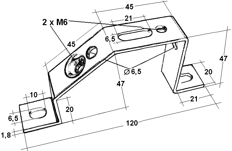 TEKNOMEGA SRL - TKGDIN1036 SUPPORTO INCLIN. X GUIDA DIN FORI M6+ASO