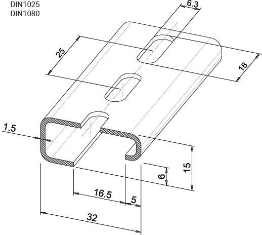 TEKNOMEGA SRL - TKGDIN1080 GUIDA DIN A G SENDZIMIR FORATA 32X15 2M