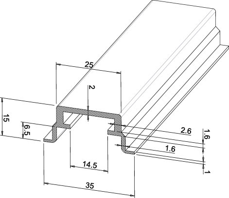 TEKNOMEGA SRL - TKGDIN1085 GUIDA DIN ALLUMINIO NON FORATA 35X15 2M