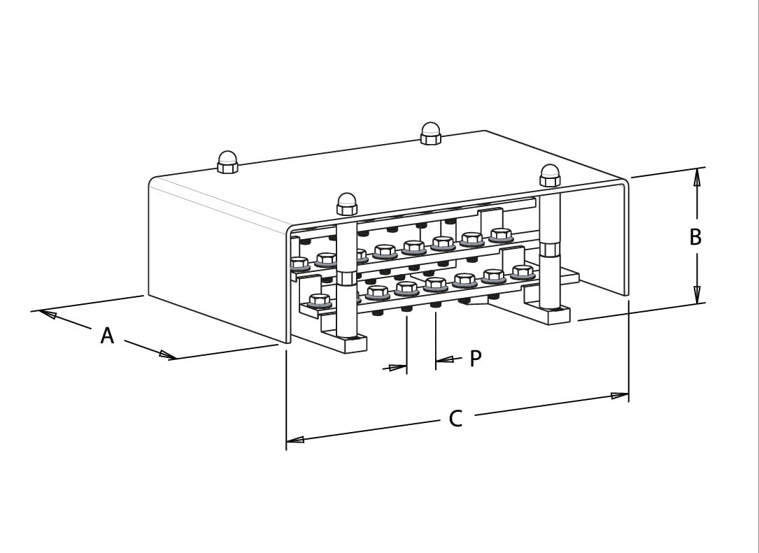 Morsettiera di distribuzione, marca TEKNOMEGA SRL, modello TKGPSP1035 - KIT RIPARTITORE 250A L230MM