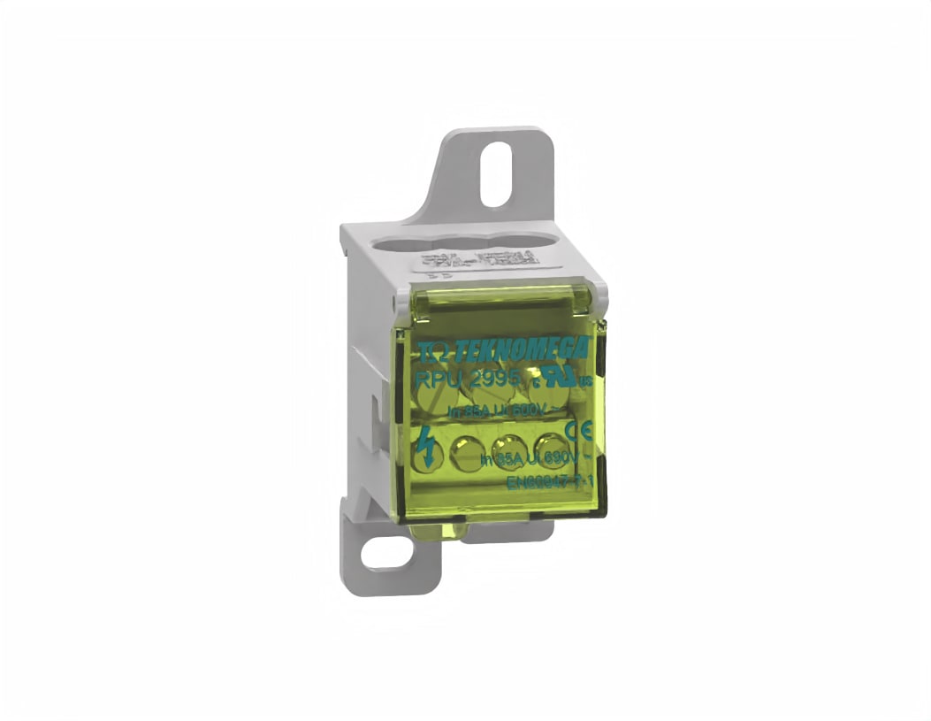 Morsettiera di distribuzione, marca TEKNOMEGA SRL, modello TKGRPU2995 - RIPARTITORE COMPATTO UNIPOL. 80A 6OUT