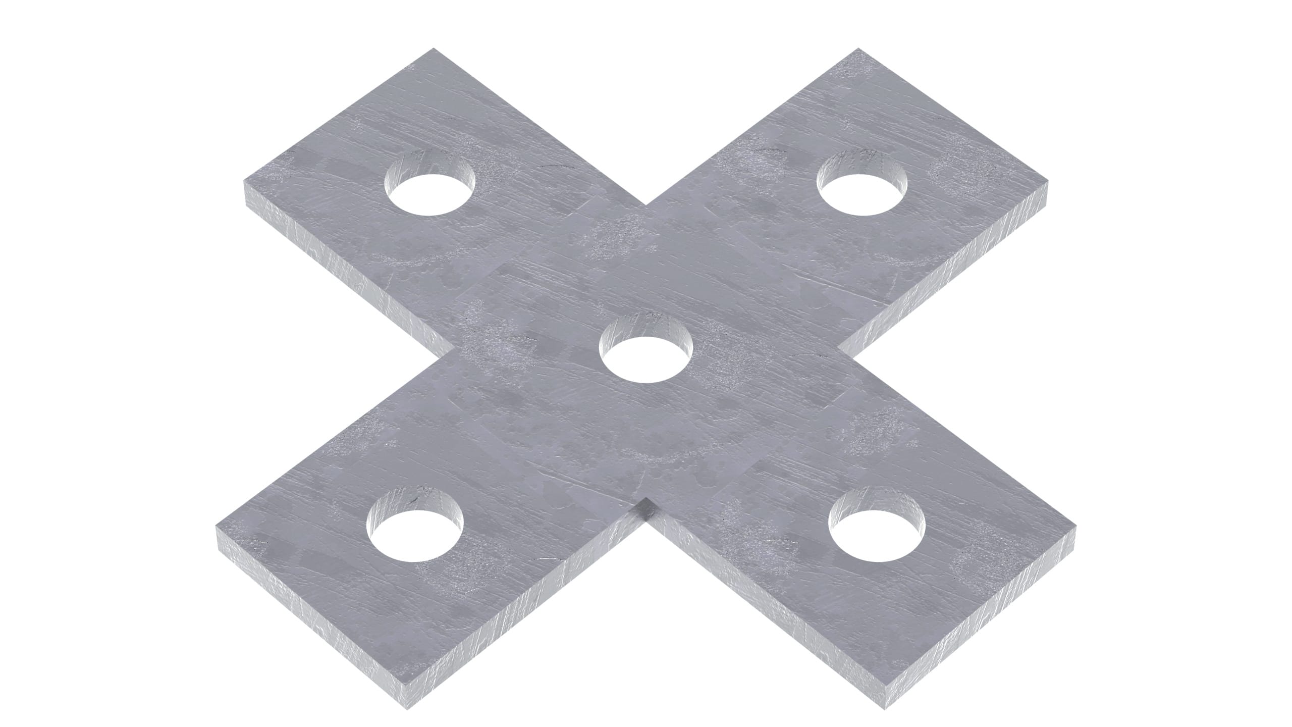 Staffa di rinforzo per canale porta apparecchi, marca TEKNOMEGA SRL, modello TKGSTF1022 - STAFFA PIANA ZINCATO CALDO A CROCE 4 FOR