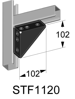Staffa di rinforzo per canale porta apparecchi, marca TEKNOMEGA SRL, modello TKGSTF1120 - STAFFA 90 ZINCATO CALDO 4 FORI RINFORZA