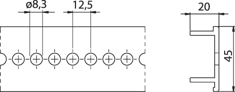 Profilato per armadi, marca TEKNOMEGA SRL, modello TKGTOP1000 - PROFILO DI SUPPORTO ALU PREFORATO. L2M