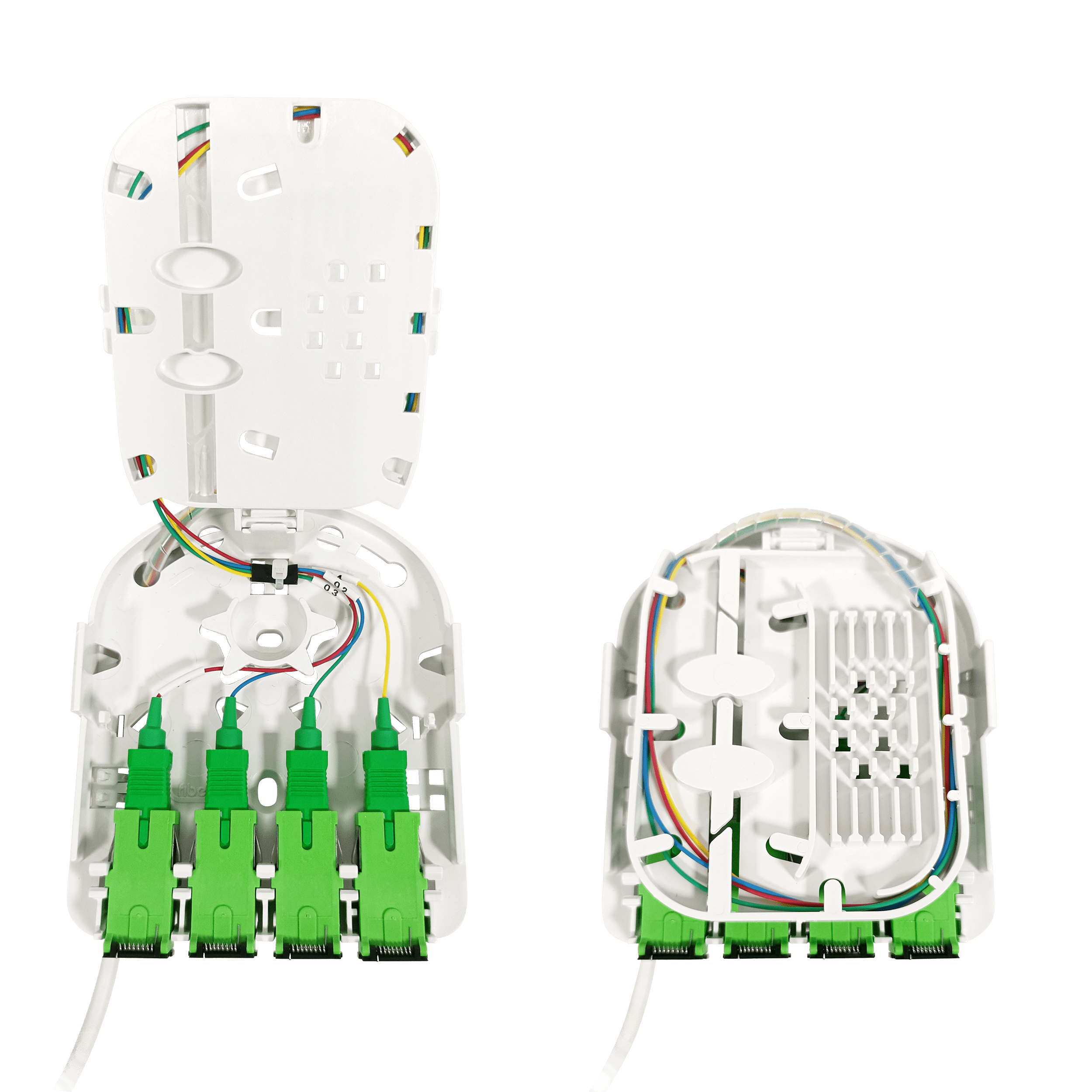 STOA di F.O. preconnettorizzato su entrambe le estremità con dispenser box, 4 uscite SC/APC. Dispositivo abilitato come punto di connessione a una rete in fibra ottica Incorpora fibra ottica preconnettorizzata su entrambe le estremità, con 4 connettori SC/APC. Ciò offre all'installatore maggiore praticità e rapidità durante l'assemblaggio, consentendo di inserire l'apparecchiatura direttamente nel QDSA e da lì di instradare la fibra attraverso i vari condotti fino al punto desiderato. L'estremità dellafibra destinata alla canalizzazione è preconnettorizzata con connettori SC/APC smontati per ridurne le dimensioni. Questi connettori sono protetti e raggruppati mediante una copertura in nylon, che minimizza il diametro del complesso e facilita il passaggio nei condotti. La copertura include un gancio che permette di tirare facilmente l'insieme, accelerando l'installazione. La STOA include la fibra Cca, quindi è consigliata per l'installazione in edifici singolari (aeroporti, ospedali, centri commerciali, scuole, università), che richiedono elevati livelli di sicurezza a causa della presenza di un gran numero di persone. L'Euroclasse Cca garantisce un adeguato livello di sicurezza in termini di reazione al fuoco e di emissione di fumi tossici, riducendoi rischi derivanti da un incendio. Il design compatto del dispositivo ne consente anche l'installazione in altri tipi di locali (officine, aule, banchi di lavoro, armadi di connessione, ecc.), utilizzandolo come punto di connessione. Include 4 adattatori SC/APC per facilitare e velocizzare la connettorizzazione. Lunghezza: 20 m.. Realizzato in robusta plastica ABS. Preconnettorizzato su entrambe le estremità con connettori SC/APC. Copertura in nylon per facilitare il passaggio nei condotti. Include4 adattatori simplex monomodali SC/APC femmina a SC/APC femmina (con tappo autobloccante). Dotato di fibra monomodale ITU-T G657A2 e Euroclasse Cca-s2,d0,a1. Ogni fibra dispone di etichetta identificativa. Sistema di ancoraggio multiplo: guida DIN standard o a parete. Singolo senso di rotazione delle fibre all’interno, facilitando l’installazione. Colore bianco (RAL 9003).