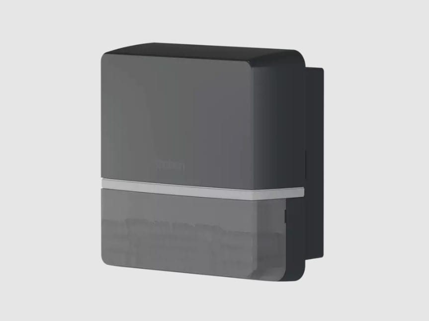 - Rivelatore di movimento a infrarossi passivi per montaggio a parete - Angolo di rivelamento 180°, 14 m - Area di rilevamento regolabile digitalmente tramite app, nessuna regolazione meccanica necessaria - Selezione della modalità: automatica / lucecontinua / D-MODE - Accoppiabile in gruppi - Uscita di commutazione 1 canale relè luce 230 V - Misurazione permanente della luce - Rilevamento posteriore (Exit-on) - Per esterni - Misurazione in luce mista adatta per il controllo di lampade fluorescenti, a incandescenza, a alogene e LED - Commutazione a carico nullo per protezione relè e carico da sovracorrenti o sovratensioni - Funzione test per controllare il range di rilevamento - Montaggio possibile su scatola ad incasso (60 mm) - Montaggio semplice della basetta da innesto - Messa in funzione immediata grazie alla preimpostazione - Morsetto per cavo di guardia - Possibilità di ridurre la sensibilità per limitare il range di rivelamento