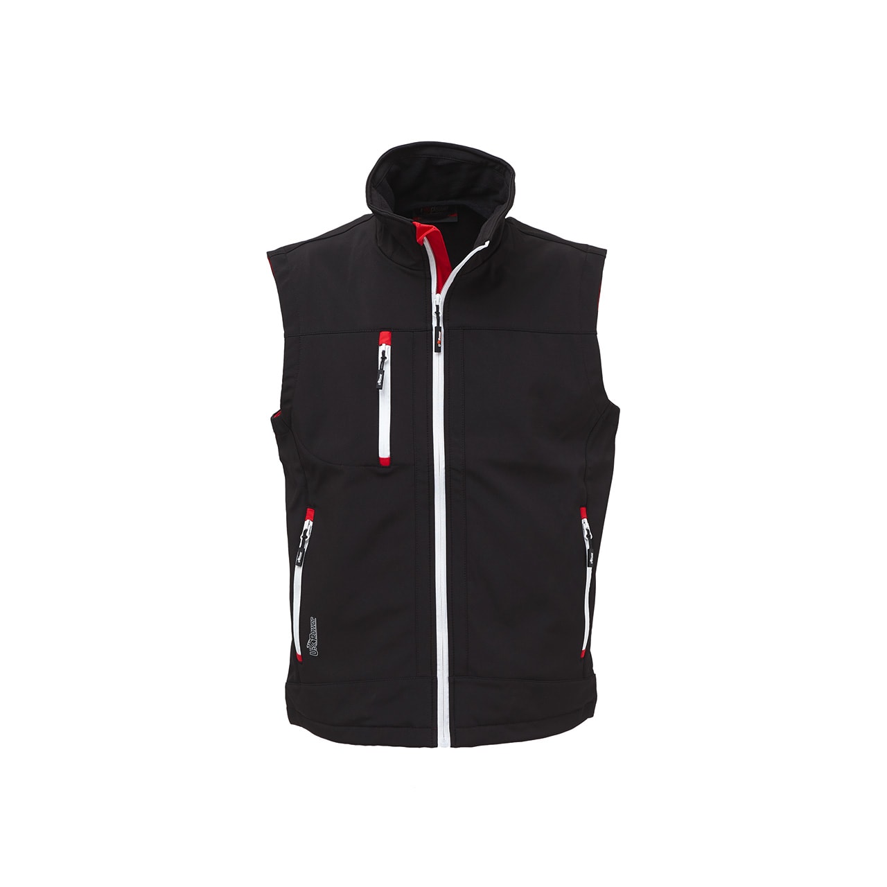 Gilet da lavoro colore Black Carbon in tessuto Soft Shell stretch traspirante antivento e idrorepellente. Tasca portacellulare su petto con chiusura zip; coulisse antimpigliamento regolabile dall’interno tasca; fondo sagomato. Gilet per Agricoltori, Autotrasportatori, Carpentieri, Elettricisti, Idraulici, Imprese di pulizia, Installatori, Magazzinieri, Muratori. COMPOSIZIONE: 96% POLIESTERE • 4% ELASTANE • 320 gr/m². NORMATIVA EU: CE EN ISO 13688:2013