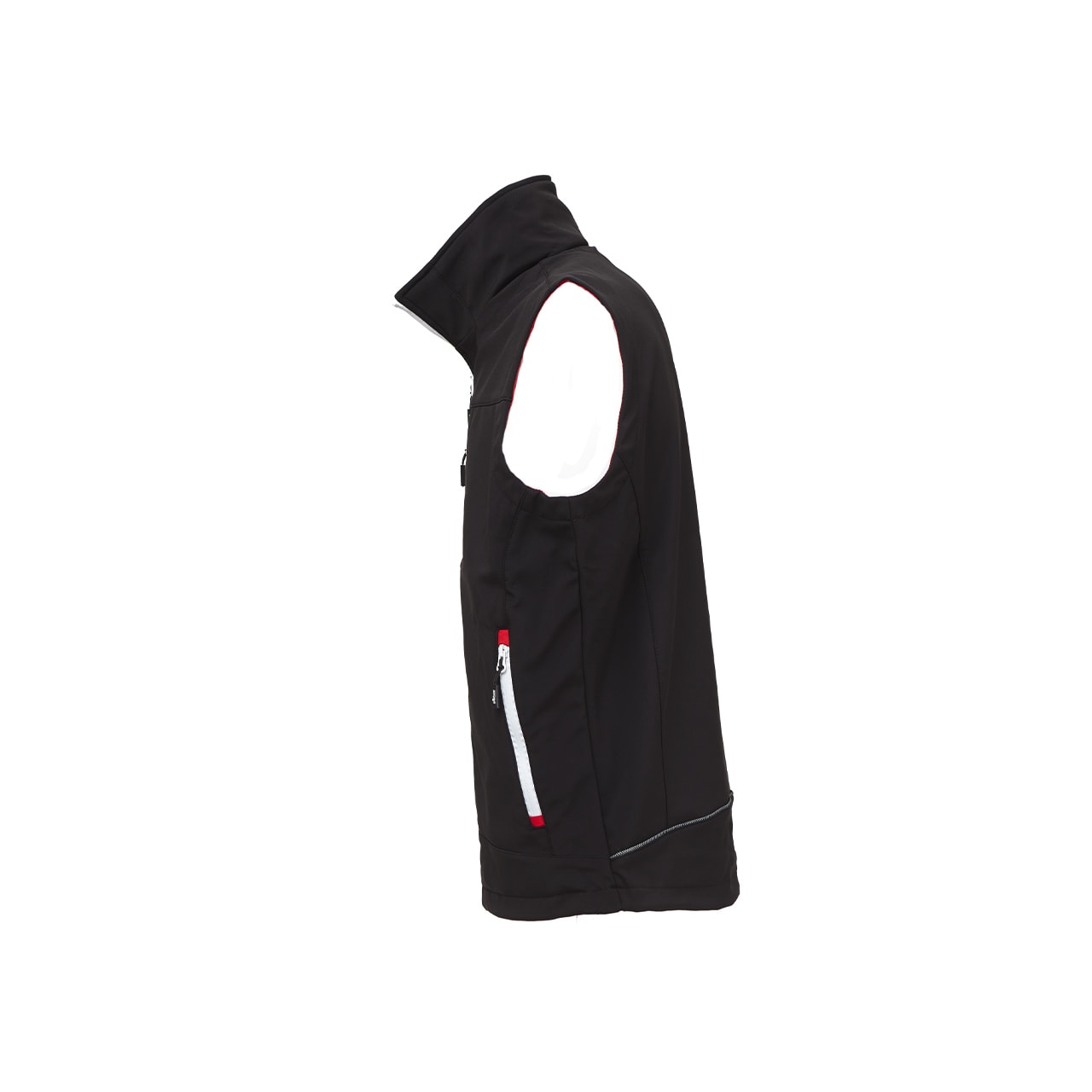 Gilet da lavoro colore Black Carbon in tessuto Soft Shell stretch traspirante antivento e idrorepellente. Tasca portacellulare su petto con chiusura zip; coulisse antimpigliamento regolabile dall’interno tasca; fondo sagomato. Gilet per Agricoltori, Autotrasportatori, Carpentieri, Elettricisti, Idraulici, Imprese di pulizia, Installatori, Magazzinieri, Muratori. COMPOSIZIONE: 96% POLIESTERE • 4% ELASTANE • 320 gr/m². NORMATIVA EU: CE EN ISO 13688:2013