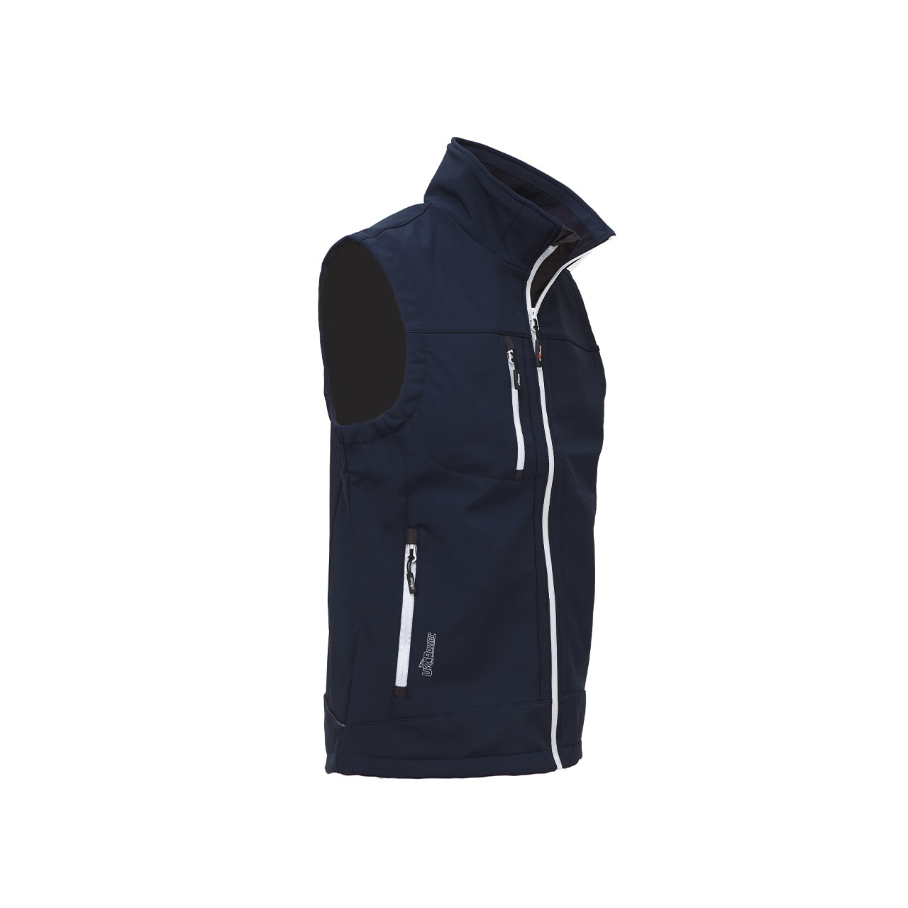 Gilet da lavoro colore Deep Blue in tessuto Soft Shell stretch traspirante antivento e idrorepellente. Tasca portacellulare su petto con chiusura zip; coulisse antimpigliamento regolabile dall’interno tasca; fondo sagomato. Gilet per Agricoltori, Autotrasportatori, Carpentieri, Elettricisti, Idraulici, Imprese di pulizia, Installatori, Magazzinieri, Muratori. COMPOSIZIONE: 96% POLIESTERE • 4% ELASTANE • 320 gr/m². NORMATIVA EU: CE EN ISO 13688:2013