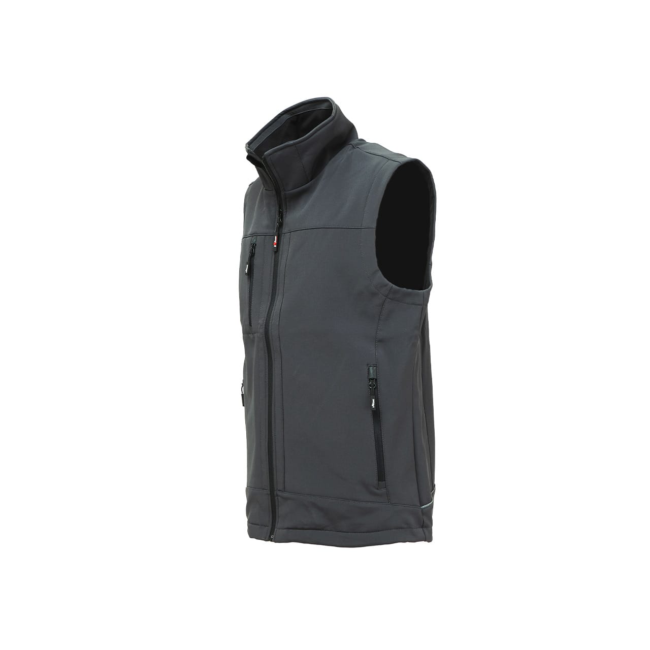 Gilet da lavoro colore Grey Meteorite in tessuto Soft Shell stretch traspirante antivento e idrorepellente. Tasca portacellulare su petto con chiusura zip; coulisse antimpigliamento regolabile dall’interno tasca; fondo sagomato. Gilet per Agricoltori, Autotrasportatori, Carpentieri, Elettricisti, Idraulici, Imprese di pulizia, Installatori, Magazzinieri, Muratori. COMPOSIZIONE: 96% POLIESTERE • 4% ELASTANE • 320 gr/m². NORMATIVA EU: CE EN ISO 13688:2013