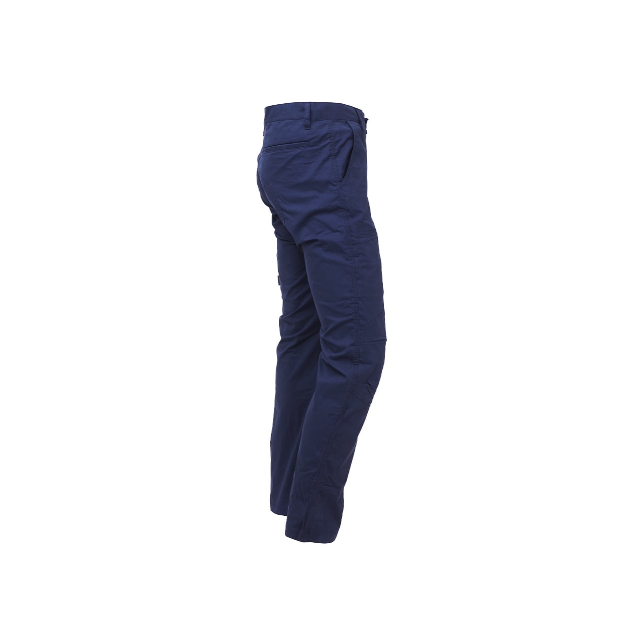 Pantalone da lavoro colore Westlake Blue in tela di cotone elasticizzato. Due ampie tasche anteriori, una tasca posteriore. Tascone laterale multiuso su gamba sinistra e taschino su gamba destra. Chiusura con zip frontale e bottone antigraffio. Doppio tessuto di rinforzo sulle ginocchia e sulla parte posteriore. Vestibilità Slim-Fit. Si abbina al Gilet Wave. COMPOSIZIONE: tela di cotone elasticizzato 97% cotone • 3% spandex • 200 gr/m². NORMATIVA EUROPEA: CE EN ISO 13688:2013