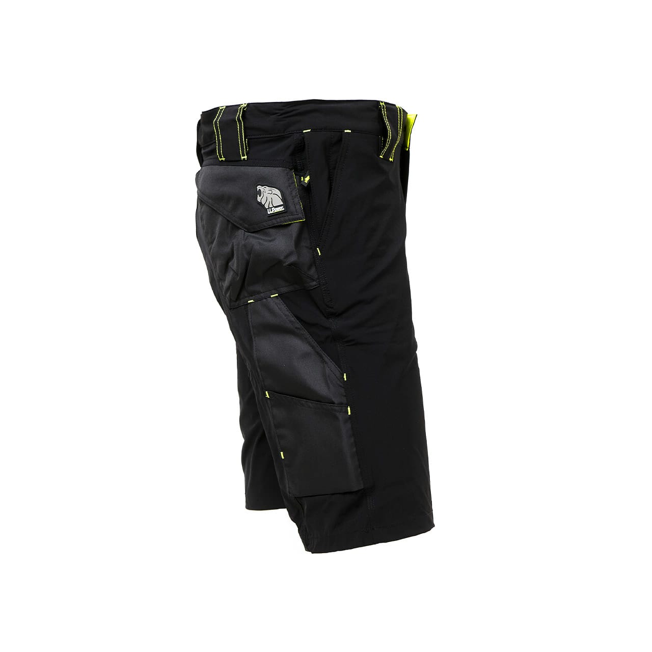 Bermuda, colore Black Carbon, in tessuto U-4 (U-Power 4 way stretch) molto comodo, resistente, morbido sulla pelle, idrorepellente, traspirante e asciuga rapidamente. Dotato di due ampie tasche anteriori, elastico in vita con un sistema innovativo di regolazione a scomparsa. Carrè posteriore accentuato per una maggior protezione della parte lombare e nastro reflex su passante tubolare posteriore. Tasca laterale porta utensili, multifunzionale con porta badge a scomparsa, due tasche posteriori di cui una con pattina e una con chiusura di sicurezza a velcro. Due tasche, chiuse con zip in corrispondenza del tascone laterale e della tasca frontale destra. Triple cuciture, bottone antigraffio, zip YKK, Slim Fit. COMPOSIZIONE: 86% NYLON – 14% SPANDEX – 140gr/m2. NORMATIVA EUROPEA: EN ISO 13688:2013
