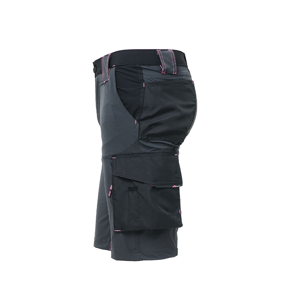 Bermuda, colore Grey Fucsia, in tessuto U-4 (U-Power 4 way stretch) molto comodo, resistente, morbido sulla pelle, idrorepellente, traspirante e asciuga rapidamente. Dotato di due ampie tasche anteriori, elastico in vita con un sistema innovativo di regolazione a scomparsa. Carrè posteriore accentuato per una maggior protezione della parte lombare e nastro reflex su passante tubolare posteriore. Tasca laterale porta utensili, multifunzionale con porta badge a scomparsa, due tasche posteriori di cui una con pattina e una con chiusura di sicurezza a velcro. Due tasche, chiuse con zip in corrispondenza del tascone laterale e della tasca frontale destra. Triple cuciture, bottone antigraffio, zip YKK, Slim Fit. COMPOSIZIONE: 86% NYLON – 14% SPANDEX – 140gr/m2. NORMATIVA EUROPEA: EN ISO 13688:2013