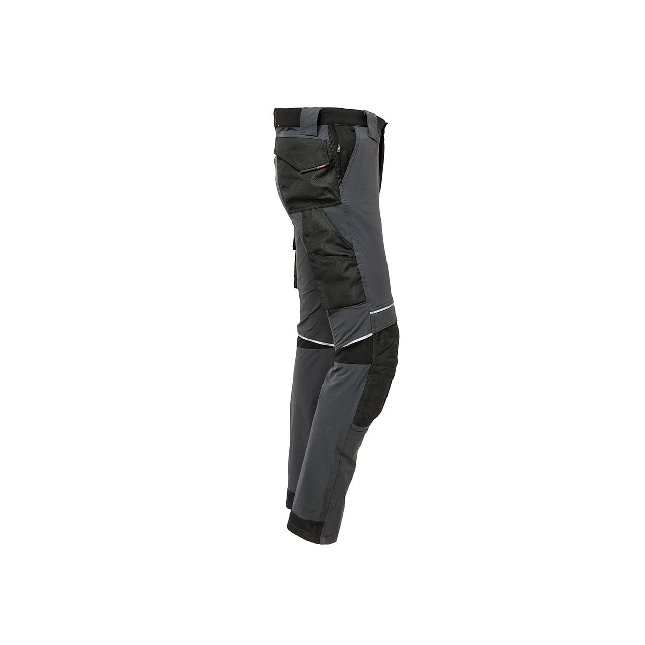Pantalone colore Asphalt Grey in tessuto U-4 (U-Power 4 way stretch) molto comodo, resistente, morbido sulla pelle, idrorepellente, traspirante e asciuga rapidamente. Dotato di due ampie tasche anteriori, elastico in vita con un sistema innovativo di regolazione a scomparsa. Carrè posteriore accentuato per una maggior protezione della parte lombare e nastro rosso/reflex su passante tubolare posteriore. Tasca laterale porta utensili, multifunzionale con porta badge a scomparsa, due tasche posteriori di cui una con pattina e una con chiusura di sicurezza a velcro, due tasche porta ginocchiera con ingresso facilitato e battitacco tutto in resistente polyoxford 600D. Due tasche, chiuse con zip in corrispondenza del tascone laterale e della tasca frontale destra. Triple cuciture. Bottone antigraffio, zip YKK, Slim Fit. COMPOSIZIONE: 90% Nylon • 10% Spandex • 260 gr/m2². NORMATIVA EUROPEA: PPE CAT. 1 - EN ISO 13688:2013, EN 14404:2004+A1:2010