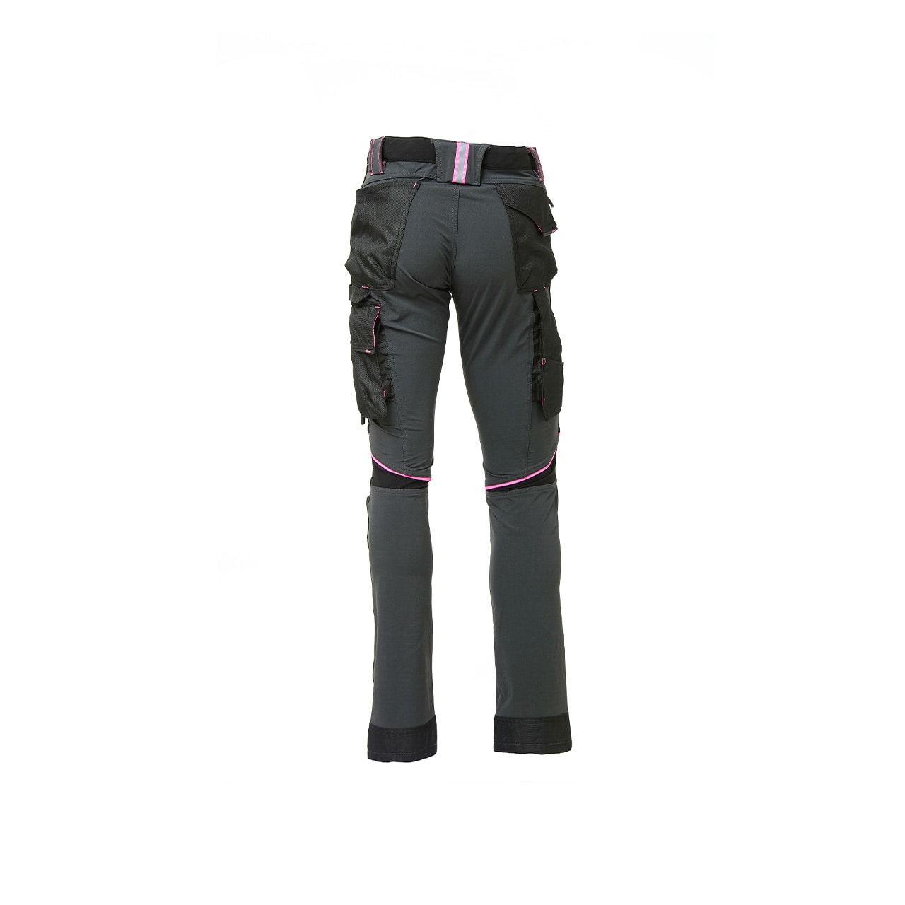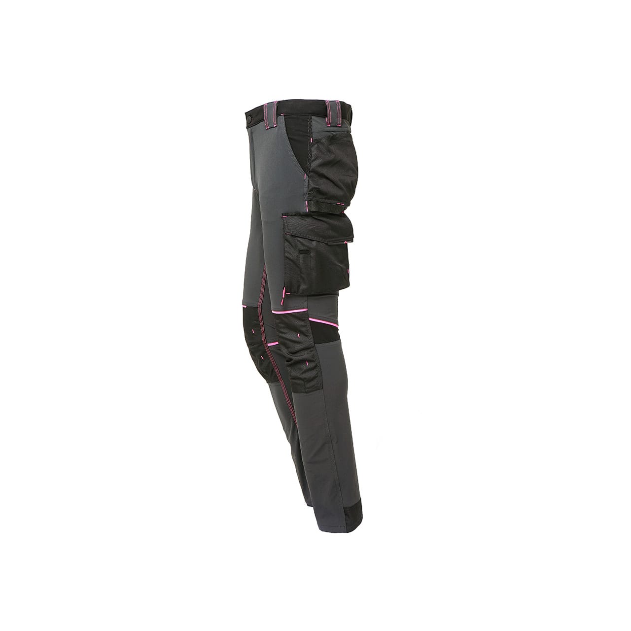 Pantalone colore Grey Fucsia in tessuto U-4 (U-Power 4 way stretch) molto comodo, resistente, morbido sulla pelle, idrorepellente, traspirante e asciuga rapidamente. Dotato di due ampie tasche anteriori, elastico in vita con un sistema innovativo di regolazione a scomparsa. Carrè posteriore accentuato per una maggior protezione della parte lombare e nastro rosso/reflex su passante tubolare posteriore. Tasca laterale porta utensili, multifunzionale con porta badge a scomparsa, due tasche posteriori di cuiuna con pattina e una con chiusura di sicurezza a velcro. Due tasche, chiuse con zip in corrispondenza del tascone laterale e della tasca frontale destra. Triple cuciture. Bottone antigraffio, zip YKK, Slim Fit. COMPOSIZIONE: 90% Nylon • 10% Spandex • 260 gr/m²