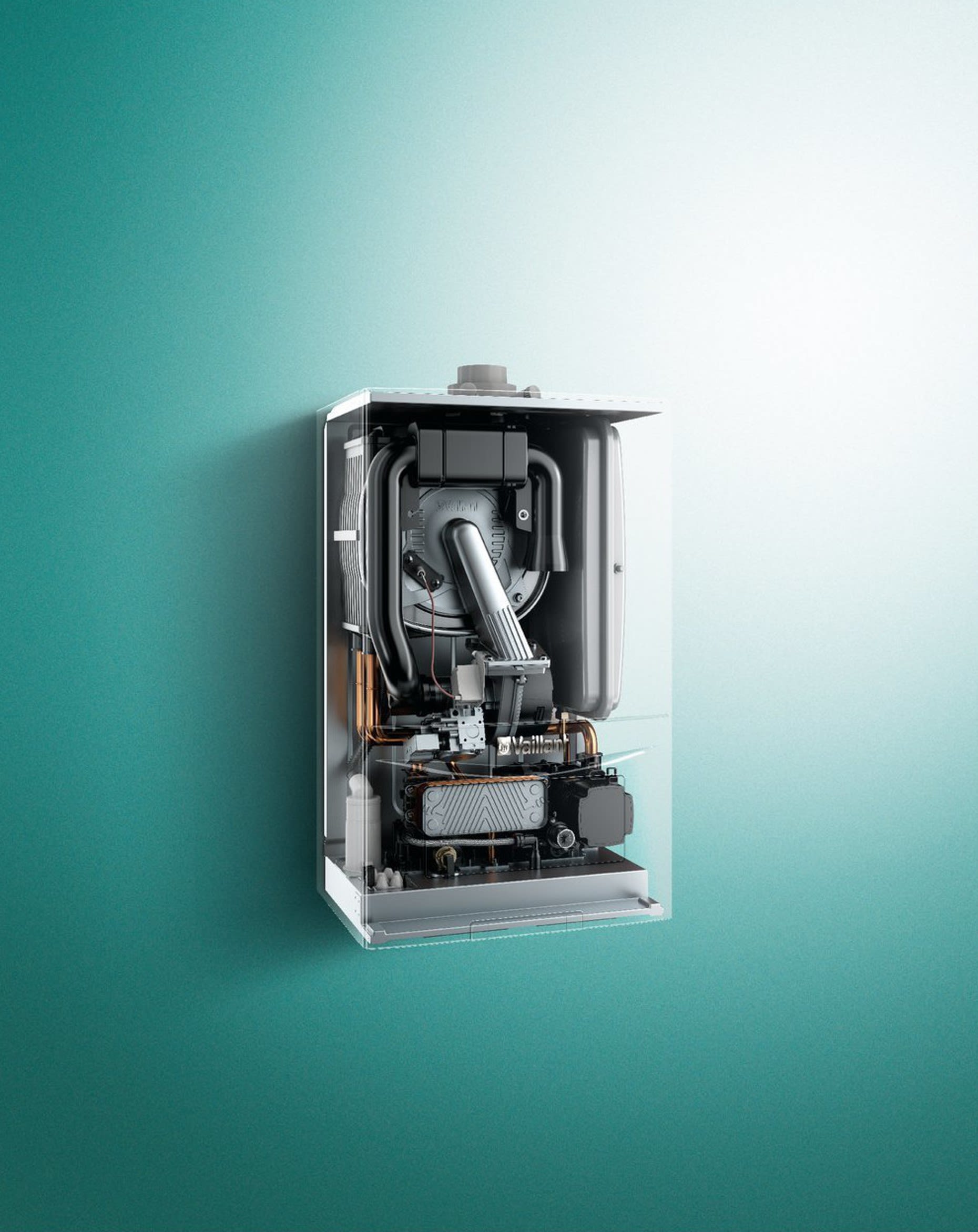 Il nuovo design di ecoTEC pure richiama immediatamente la qualità e la affidabilità che caratterizza il DNA di Vaillant. Caldaia a condensazione da interno con misure standard Vaillant 72 cm di altezza, 44 cm di larghezza e 33 cm di profondità. ecoTECpure è stata progettata con l’intento di offrire la soluzione ideale per la sostituzione di caldaie tradizionali anche di altre marche, grazie alle connessioni idrauliche verticali, le quali garantiscono molta flessibilità. Una serie di kit d’allacciamento permettono la rapida sostituzione dei modelli atmo-turboBLOCK. Facilità nella gestione grazie ad una serie di comandi ed un display molto semplificati, adatti ad ogni tipologia di clientela. Vaillant ha individuato una soluzione innovativa per evitare il congelamento del sifone condensa, l’elemento più sensibile al gelo e grazie all’accessorio ecoLEVEL è possibile convogliare la condensa negli appositi scarichi. La caldaia monta una nuova pompa ad alta efficienza con elevate prestazioni, uno scambiatore in acciaio inox ed un vaso espansione di 8 litri.