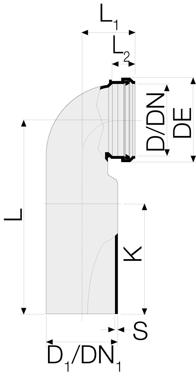 CURVA HDPE VERTICALE ø110x110 PER WC SOSPESI