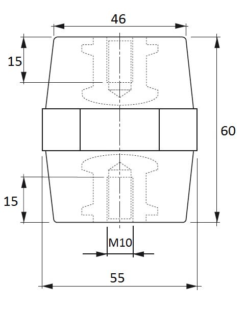 ISOLATORI E PORTASBARRE Altezza: 60 Tipo: Ottagonale Inserto: M10