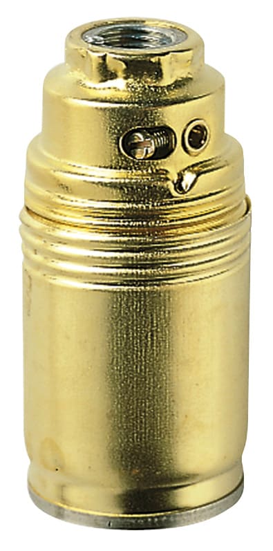 Portalampade E14, raccordo M10x1 con vite di blocco e morsetto di terra sul cappuccio, cappuccio e camicia liscia acciaio zincato lucido colore ottone