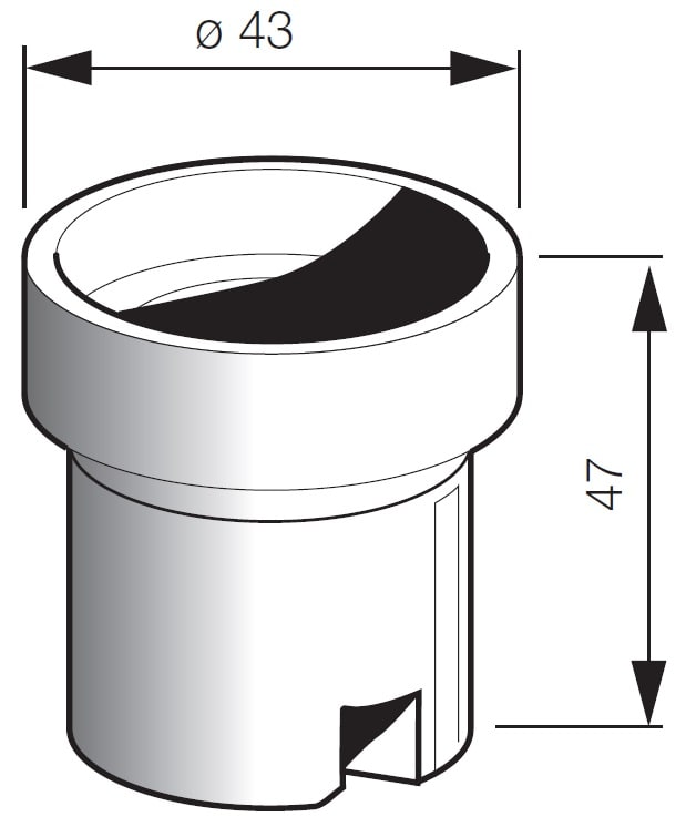Portalampade E27, corpo porcellana cilindrico ø 43 mm, bianco. Fori di fissaggio ø 4 mm interasse 18 mm