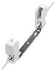 Portalampade a blocchetto steatite 8 A 250 V attacco R7s per lampade alogene 300-500 W, 200 mm cavo teflon PTFE 0,75 mm2 - staffa di fissaggio a U. Massima temperatura d’impiego continuo del portalampade 350 °C, del cavo 250 °C. Staffa con foro centrale ø 4,5 mm e asole 4,5x9,5 mm interasse 65 mm
