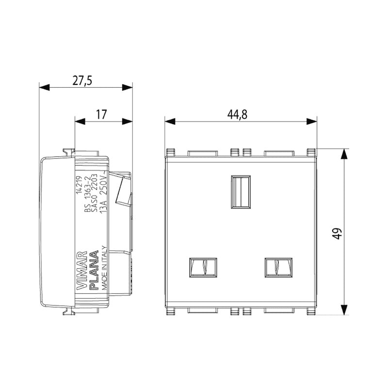 VIMAR SPA - VIW14219.SL PRESA 2P+T 13A INGLESE SILVER