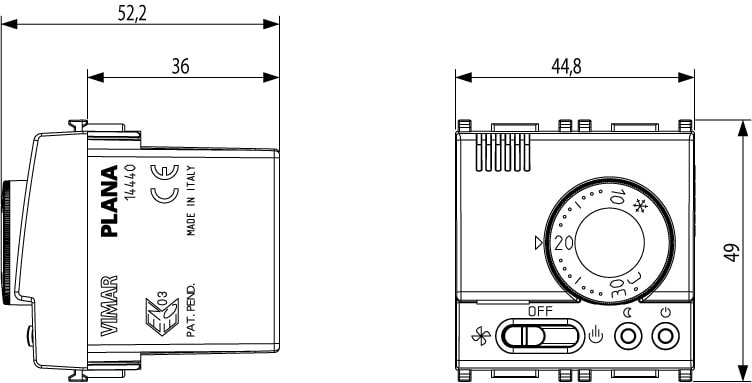 Termostato elettronico per controllo temperatura ambiente (riscaldamento e condizionamento), commutatore estate/off/inverno, ingresso per l’attivazione a distanza della funzione “risparmio energetico”, uscita a relè in scambio 6(2) A 230 V~, alimentazione 120-230 V~ 50-60 Hz - 2 moduli.SILVER (argento)