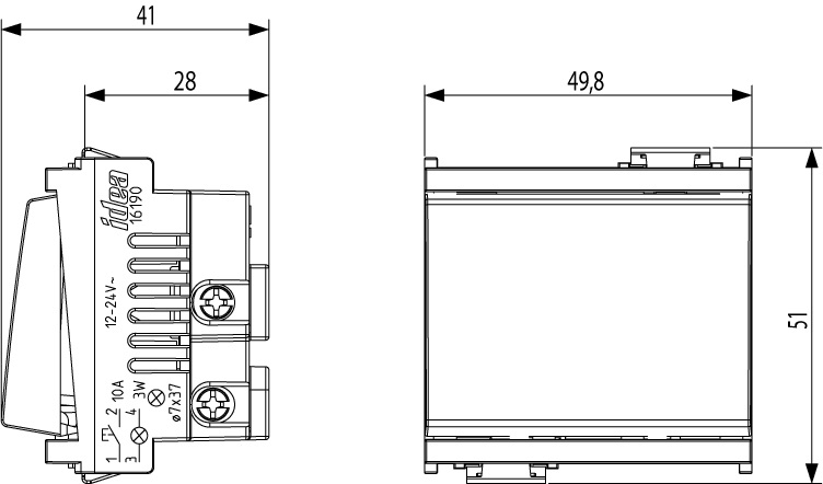 Pulsante 1P NO 10 A 12-24 V~ (SELV), a targhetta luminosa, per lampada siluro 12 o 24 V 3 W ø 7x31 mm, bianco - 2 moduli
