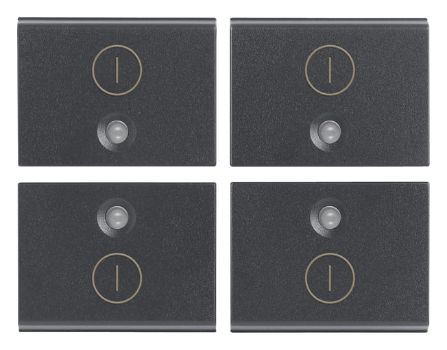 Quattro mezzi tasti intercambiabili 1 modulo,simbolo I O, grigio.