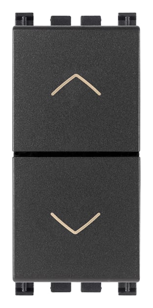Commutatore 2P 10 AX 250 V~ (6 morsetti), a due tasti, con frecce direzionali e posizione OFF centrale, grigio