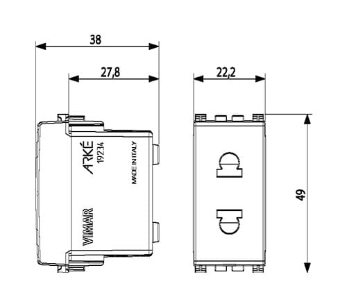 VIMAR SPA - VIW19234 PRESA SICURY 2P 16A USA+EU D4,8MM GRIGIO