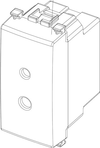 Presa polarizzata 2P 6 A 24 V (SELV) per spine 01616 e 01617 (1 spinotto ø 3 mm e 1 spinotto ø 4 mm interasse 12,4 mm), morsetti a vite, grigio. Per impianti Hi-Fi, filodiffusione, etc