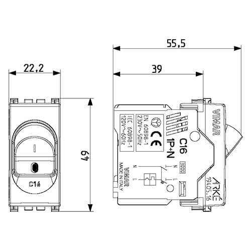 VIMAR SPA - VIW19405.16 INTERRUTTORE MT 1P+N C16 120-230V GRIGIO
