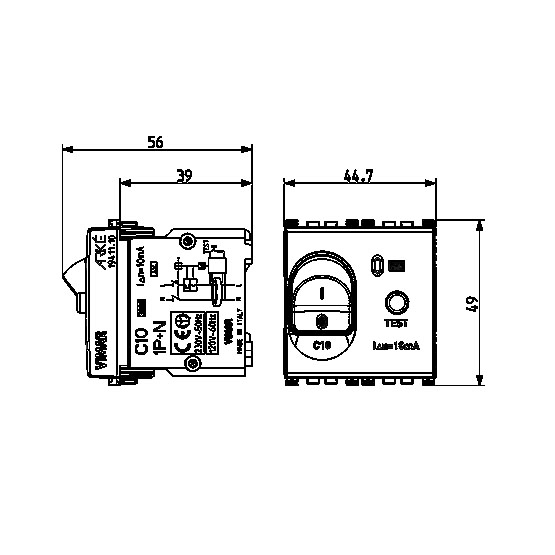 VIMAR SPA - VIW19411.10 INTERRUTTORE MTDIFF.1P+N C10 10MA GRIGIO