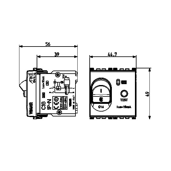 VIMAR SPA - VIW19411.16 INTERRUTTORE MTDIFF.1P+N C16 10MA GRIGIO